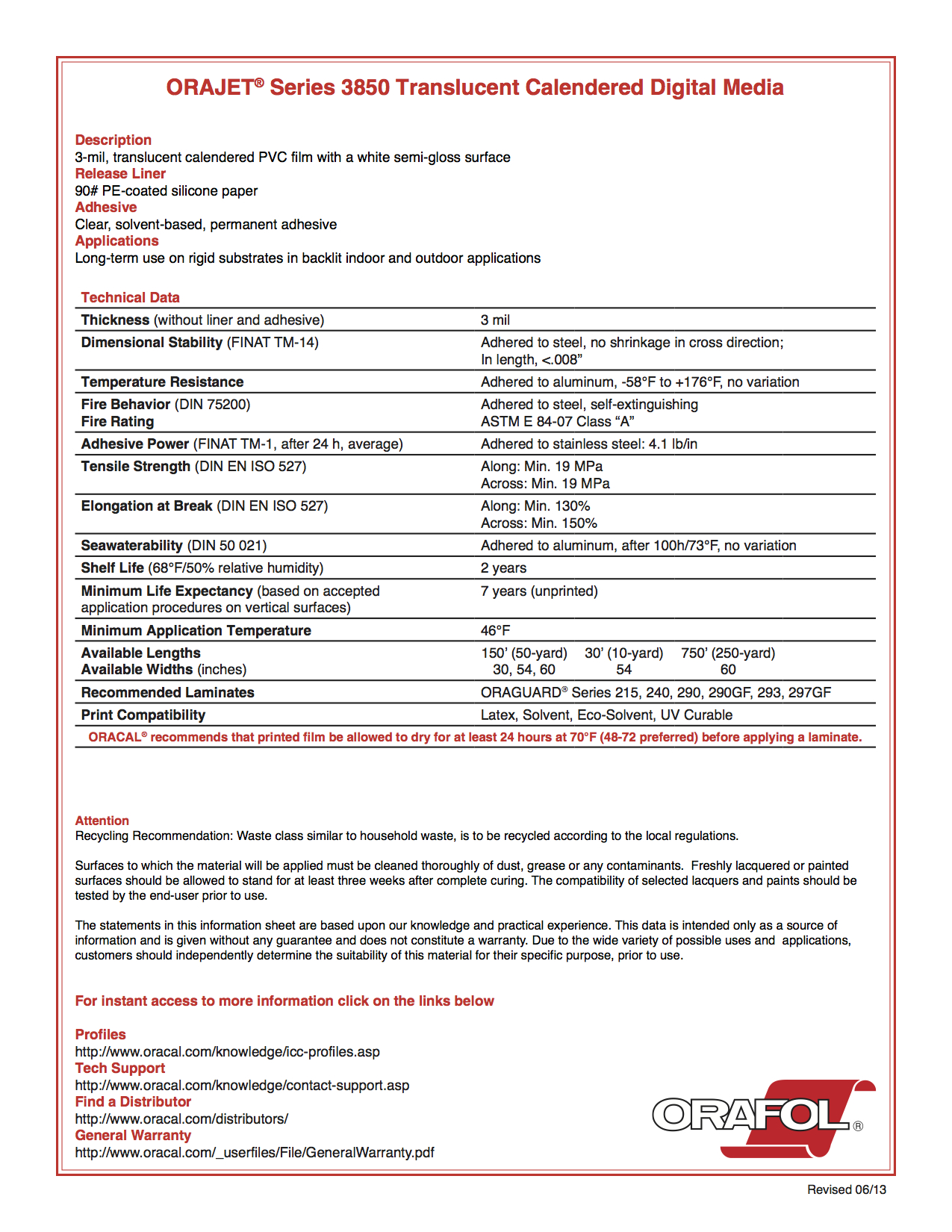 ORAJET 3850 Product Information PDF